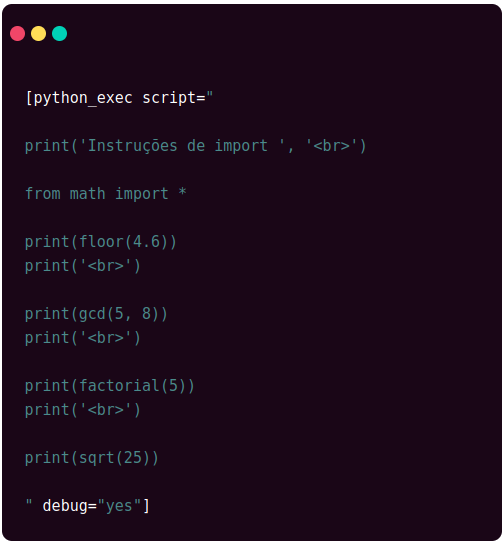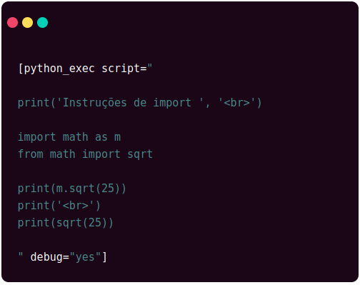 Na versão atual do plugin, não há suporte para importar bibliotecas externas. Apenas as bibliotecas incluídas na instalação básica do Python podem ser utilizadas.
